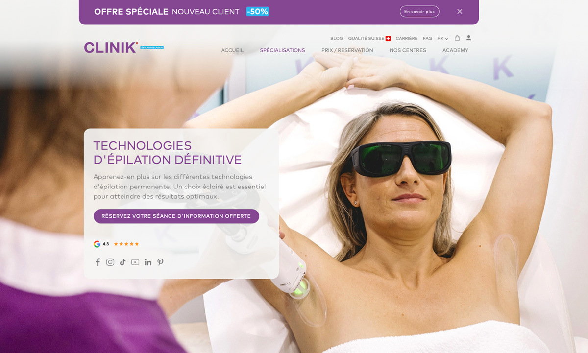 Clink, spécialiste de l’épilation laser présent dans plusieurs centres en Suisse, nous a sollicités pour réaliser des photos mettant en avant leurs services.