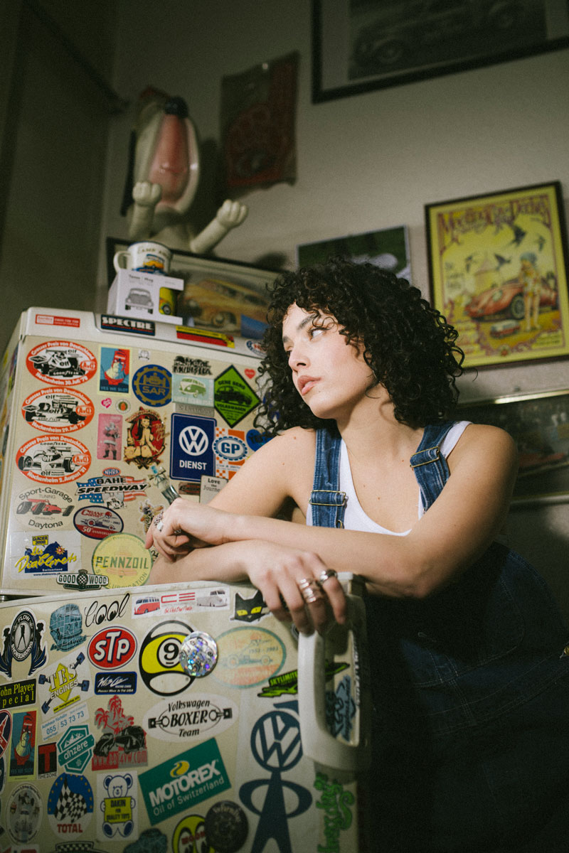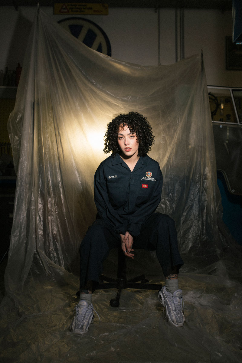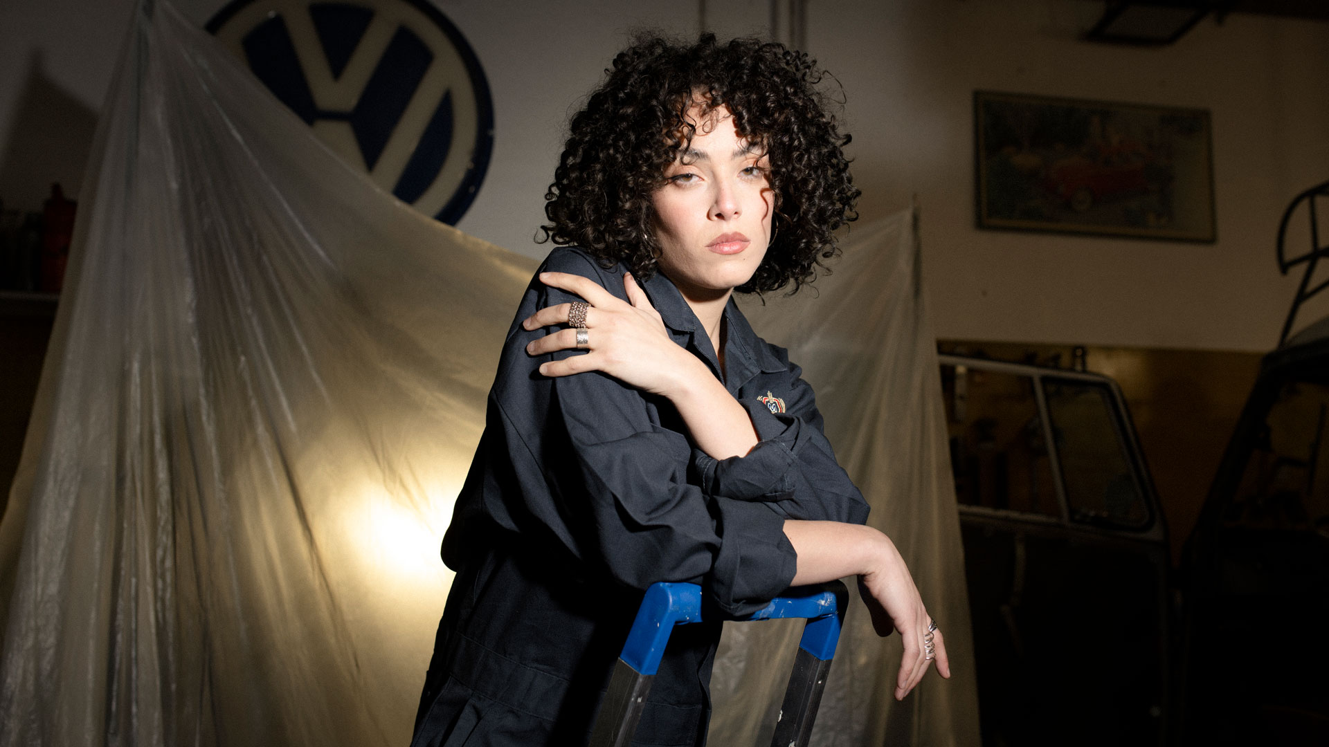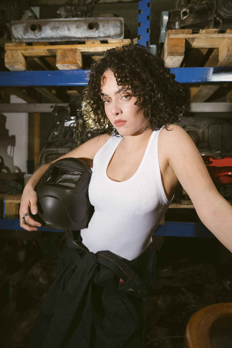 Dans ce projet, Elsa nous plonge dans un univers à l’esthétique industrielle, au cœur d’un garage où l’atmosphère mécano domine. La modèle évolue dans cet espace brut, entre outils, textures métalliques et objets vintages, créant un contraste fort entre univers ouvrier et pièces de mode.