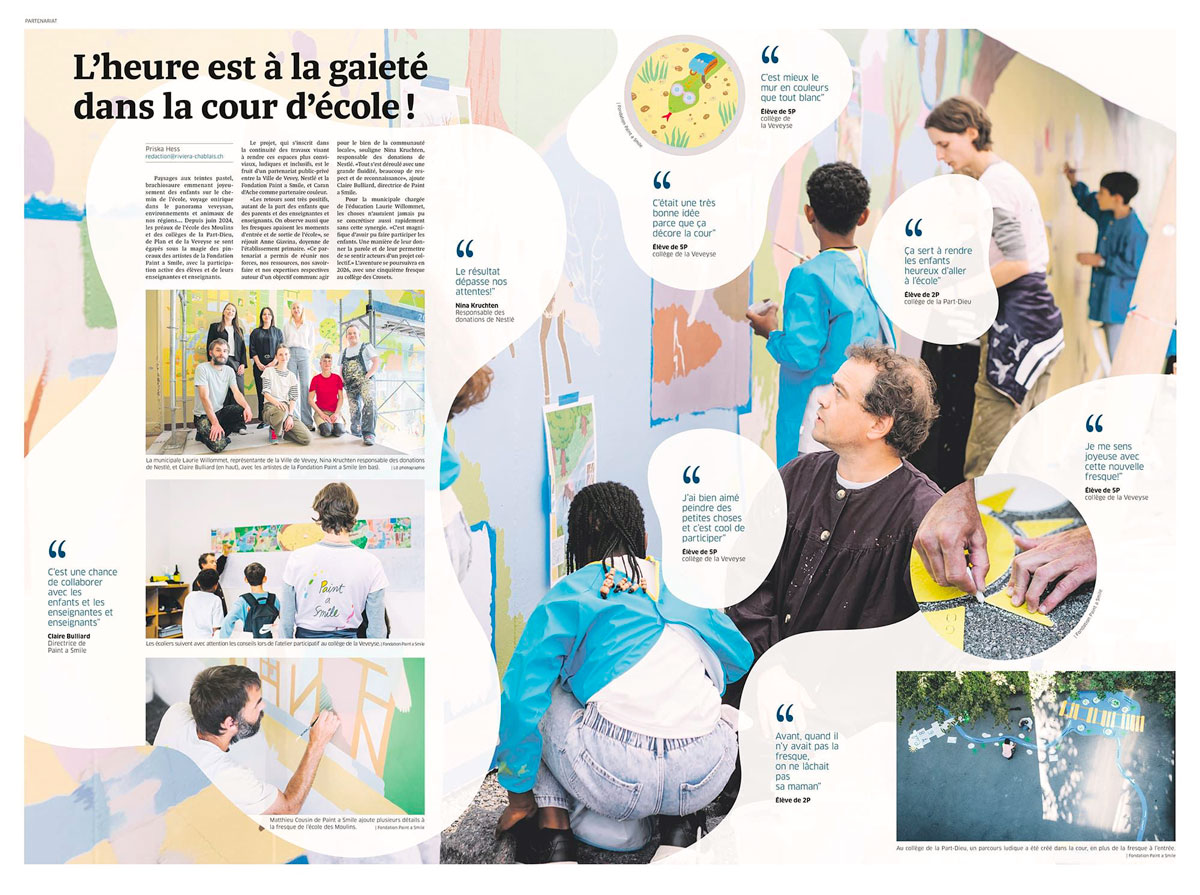 Nous avons eu le plaisir d’accompagner Paint a Smile, ONG genevoise spécialisée dans la création de fresques colorées pour écoles, hôpitaux et lieux accueillant des enfants ou des personnes en situation de handicap. Leur travail, réalisé en collaboration avec les équipes locales, vise à apporter une ambiance positive et stimulante.